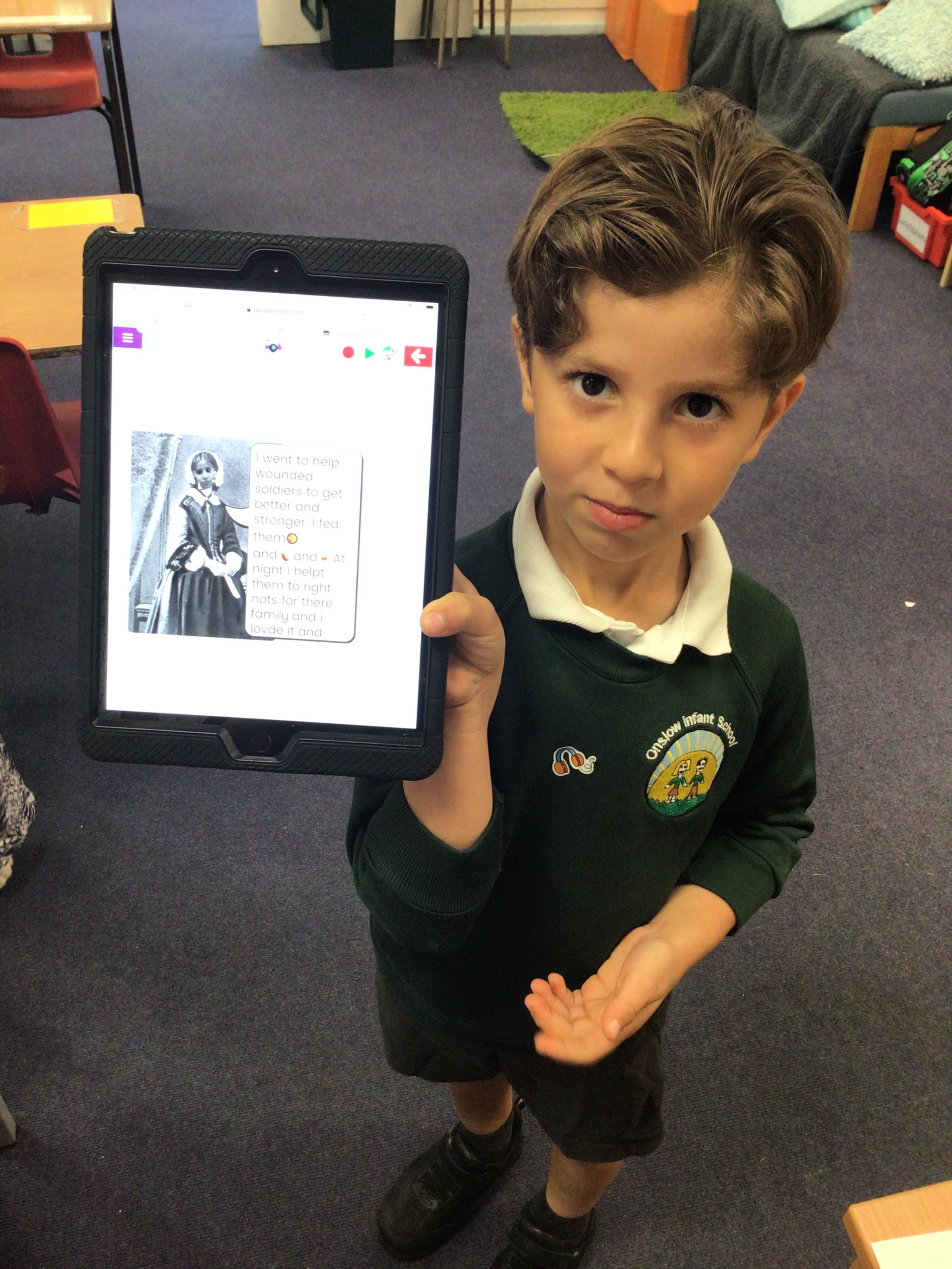 In Year 2, the children’s iPad skills are built upon. They will begin by becoming photographers and enhancing their ability to create, organise, store, manipulate and retrieve digital content by creating a video presentation or Book Creator on an artist. Using the Purple Mash platform, pupils are given the opportunity to compose, save and present a digital music composition for peer review. Through the use of simple on-screen programming software and simple floor robots, the children will become computer programmers, implementing algorithms, learning to create and debug simple programs and use logical reasoning to predict the behaviour of simple programs. Digital microscopes and thermometers may be used in Year 2 to enhance science technology, to record weather data and weights and measures links to maths and science curriculum.